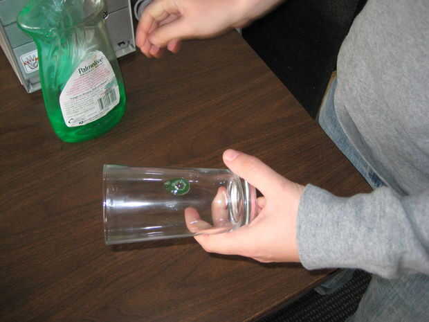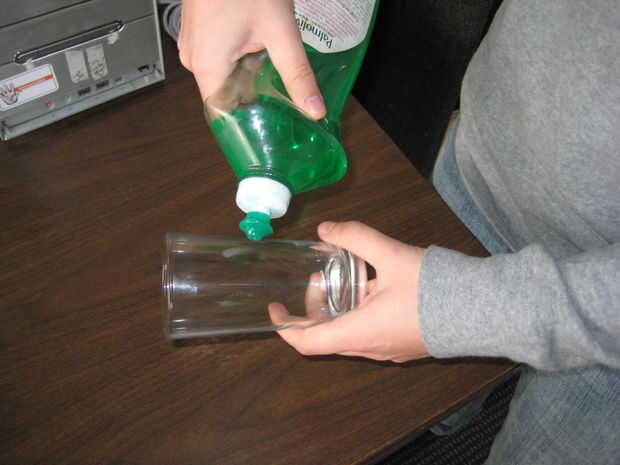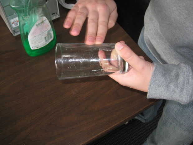 Aplique una pequeña cantidad de jabón a la superficie del vidrio, especialmente cuidado de no conseguir el jabón en cualquiera de los extremos de la Copa. Si consigues jabón en los extremos, no agarre las ruedas en el accesorio rotatorio y su cristal sólo girará en su lugar, haciendo que el aguafuerte no.