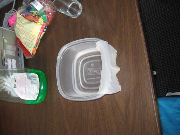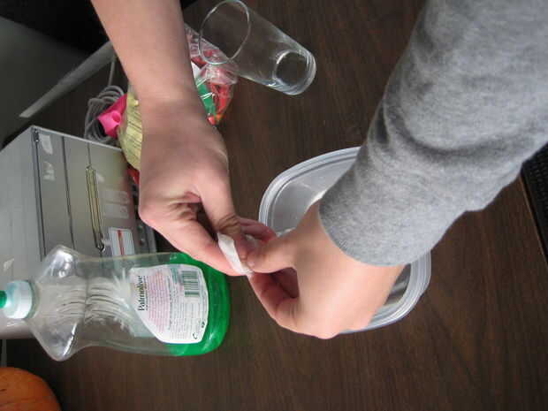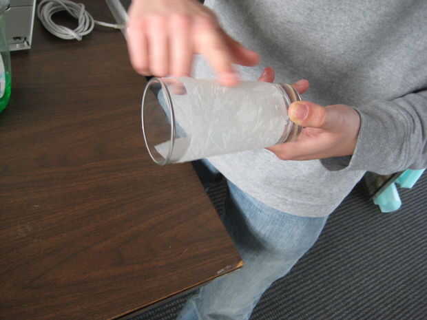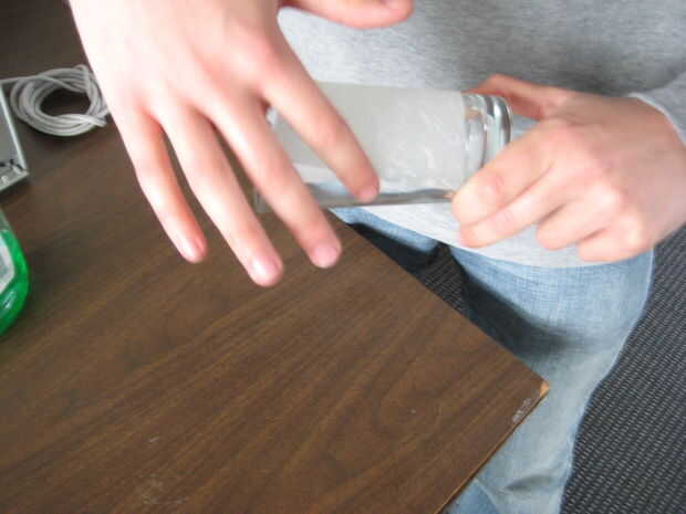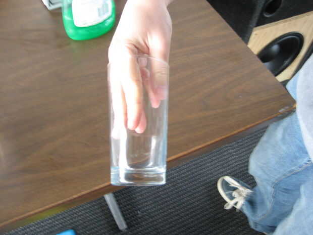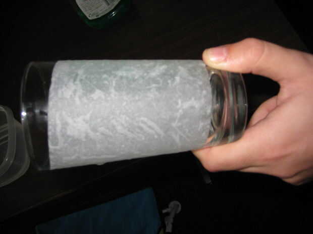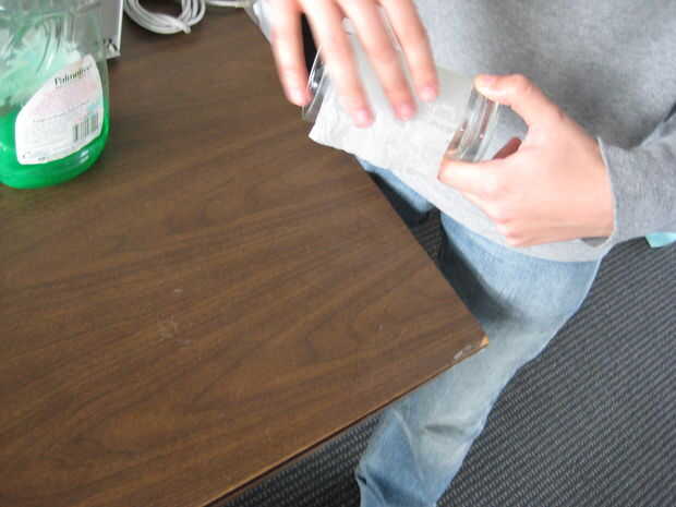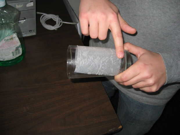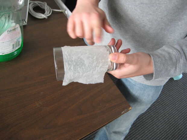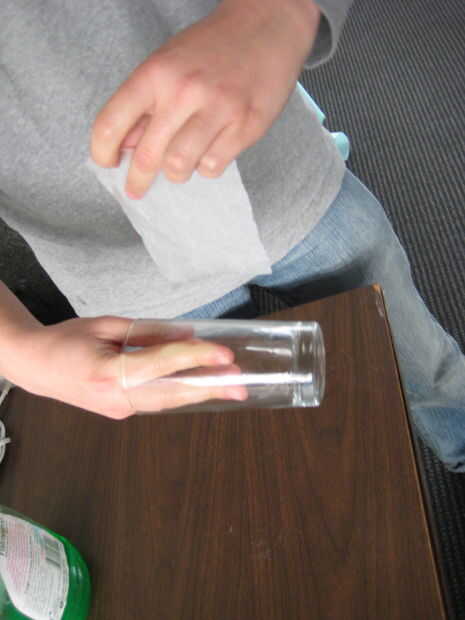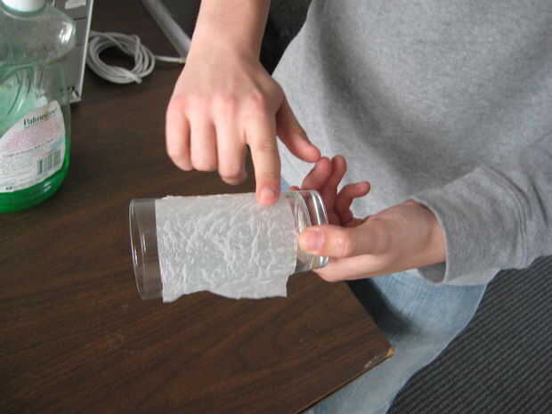 Lugar esta toalla de papel alrededor de su copa. Liso hacia fuera a salir burbujas, pero tenga cuidado de mantener esto fuera de los bordes del vidrio, que interfiera con su rotación.