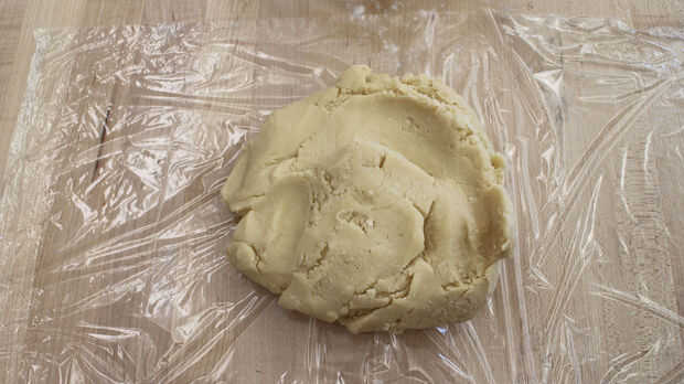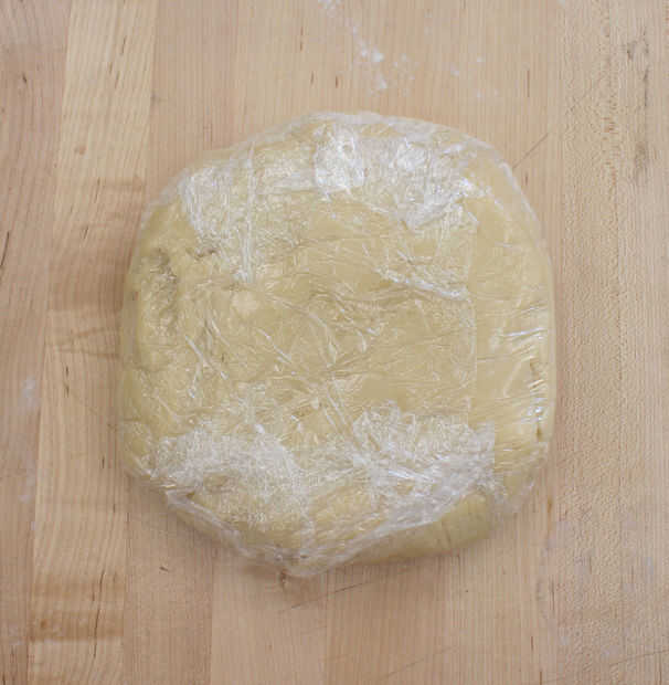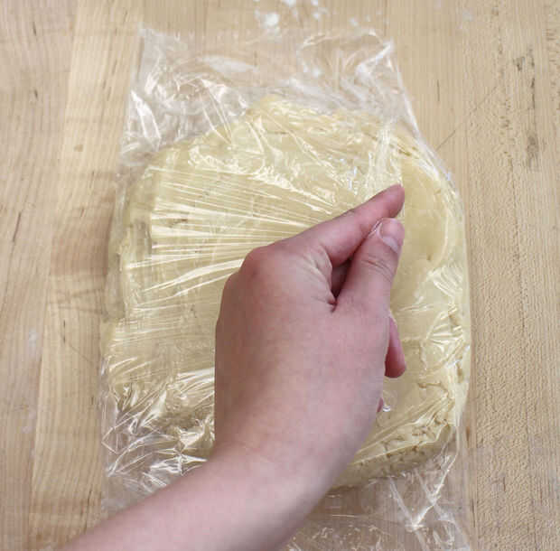 Girar la masa hacia fuera plástico y chill en la nevera durante una hora, o hasta que esté firme pero no duro.