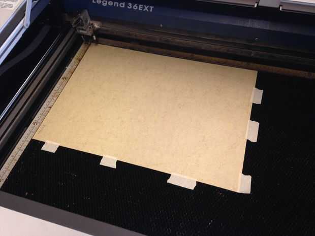 1. Epilogs tienen guías de resorte, con bisagras a lo largo del borde del panal. Tire de estos y su papel en el panal, empalmar el borde contra el borde de la guía y luego baje a la guía para fijar los bordes del papel. Si no utiliza un Epilog, use cinta adhesiva para asegurar los bordes del papel hasta el borde del panal.