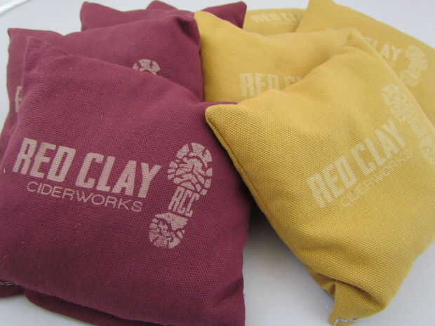 Atento bolsas son bolsas de medida 6 "x 6" de la lona y llenan de una libra de maíz alimento. También puede rellenarlos con perdigones de plástico para que sean resistente a la intemperie, pero el maíz permite una pequeña cantidad de polvo al golpear las tablas, que ayuda a conseguir el deslice perfecto al jugar. No alcantarillas, ordenamos nuestras bolsas de Puerta trasera de la victoria, pero hemos querido personalizar para el destinatario. Utilizamos un láser de 120 vatios de Speedy 300 para grabar el logo de un lado de cada bolsa. El truco es golpear ligeramente el paño con el láser, blanqueamiento a la tela, pero sin comprometer la integridad de la misma.