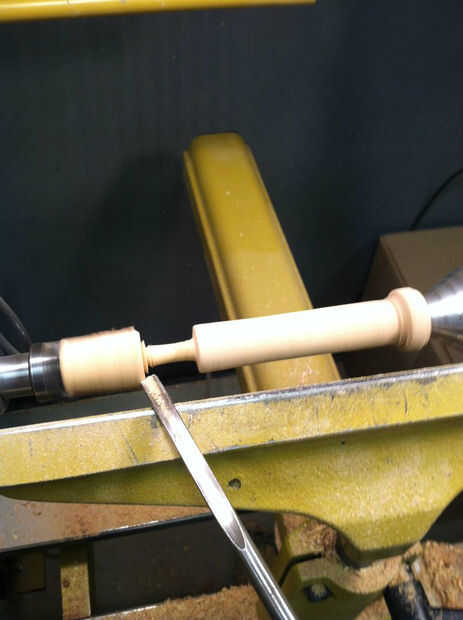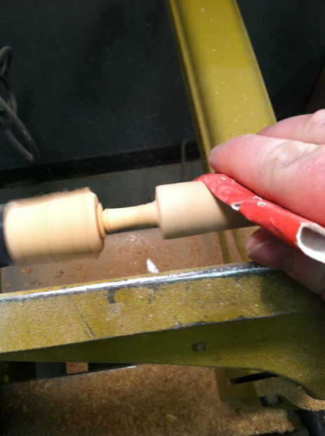 Una vez en la forma que usted es feliz con, les recomiendo tomar algún papel de lija mientras que todavía en el torno y dejar que la máquina haga el trabajo por usted. También puede utilizar algunas de las virutas que se llevó a cabo contra la pieza de giro para pulir el mango.