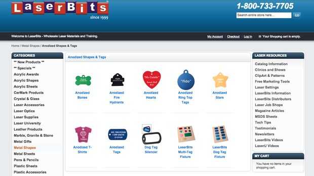 Laserbits.com es un gran sitio si usted posee un láser más lindo y necesita materia prima a cortar. Tienen una buena selección de etiquetas de aluminio anodizado en diferentes formas que usted puede grabar en el cortador del laser para su mascota, su equipaje o incluso a ti mismo. Elegí el perro huesos para mi mascota.