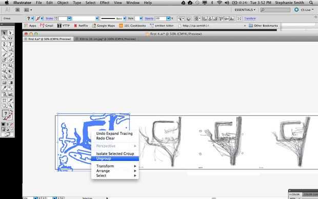 - Me gusta pasar tiempo limpiar la imagen en primer lugar, sobre todo después de vivo trazo. Primero seleccione el dibujo y pulsa "Desagrupar", luego puede seleccionar y eliminarlo que no quieras impresa individualmente.