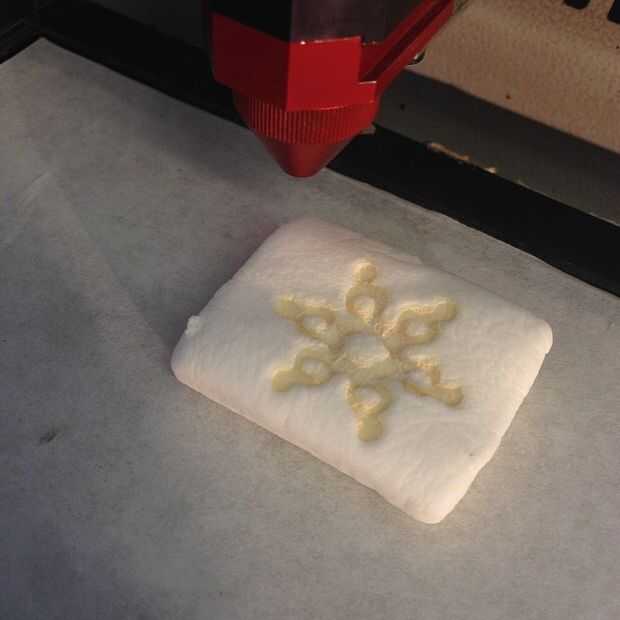 ¿Cuándo fue la última vez que limpian el cortador del laser? Porque lo más probable es que nadie más tiene. Asegúrese de que la cosa esté limpia antes de grabado comestibles. Además, traer una superficie limpia para poner entre la comida y la cama gruesa.