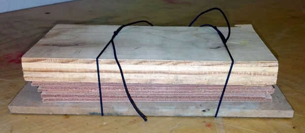 Sandwich el cuero cortado entre dos tableros recta para alisar la piel. (ver foto)