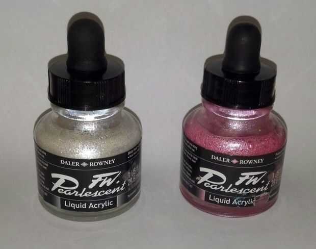 2. alta calidad de acrílico tinta en un color claro. Para este tutorial he utilizado tinta Daler-Rowney F.W. acrílico agua resistente de la artista en perla blanca y perla rosa.
