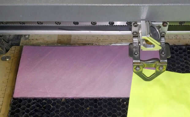 Colocar el cuero en la esquina superior izquierda de la cama láser. Enfocar el láser según las instrucciones del fabricante.