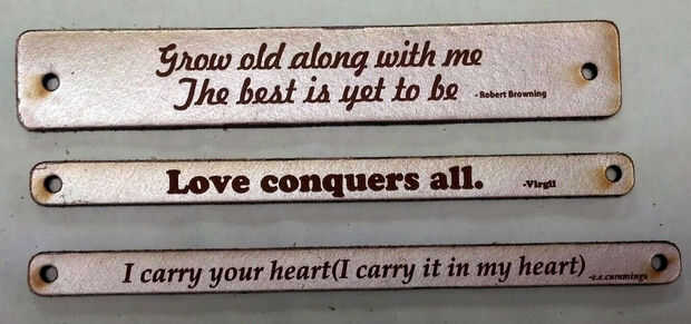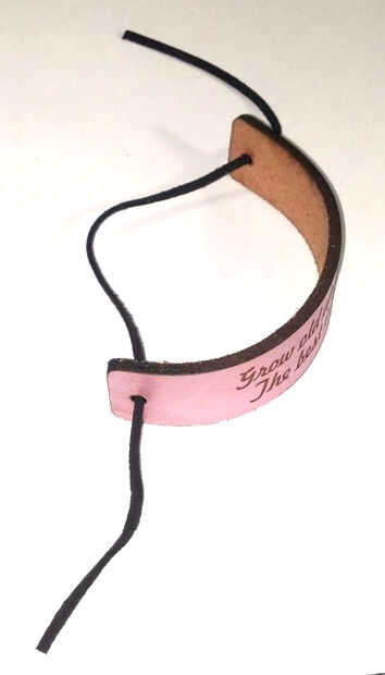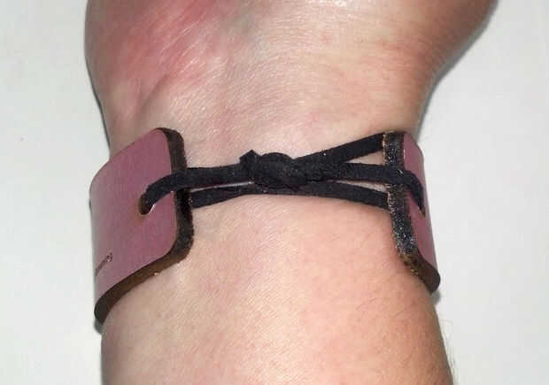 Cortar un trozo de cuerda o cinta alrededor 11" para cada pulsera. Ajuste para el tamaño de su muñeca. La cadena por los agujeros de la pulsera. Coloque la pulsera en su muñeca. Ate la cinta o cordón.