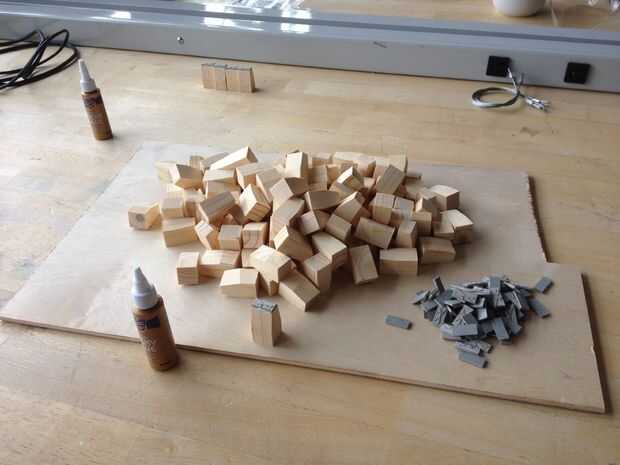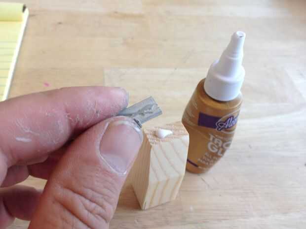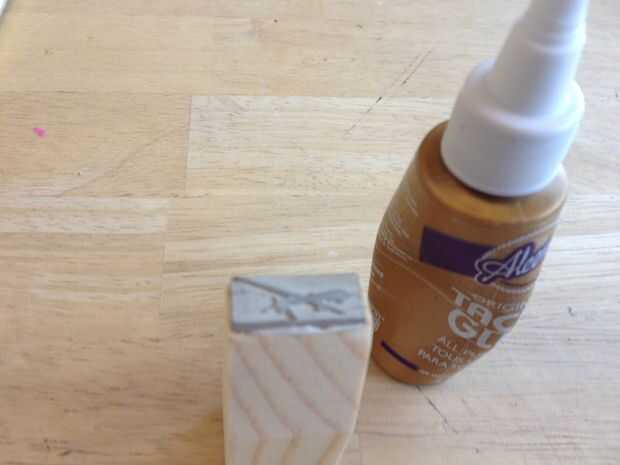 1) puse un pequeño toque de pegamento pegajoso en el lado izquierdo de la zona donde el material de sello se encuentra con la madera. Luego empujó cada pieza de sello de goma a través de este pegamento, coloca y empujó suavemente en su lugar. Usted quiere que vaya recto!