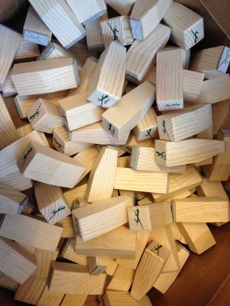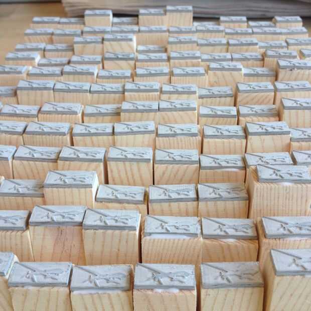 3) por último, utilizo mi cojín de sello verde para estampar una imagen de zánganos en el mango de cada sello.