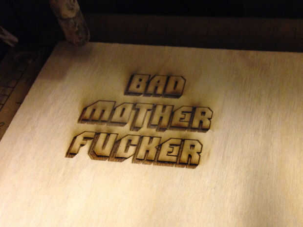 Como este fue mi primer intento con el cortador del laser primero grabado al agua fuerte una pieza de madera de desecho. Puse la pieza en la superior izquierda por lo que puedo alinear y Plaza de la madera contrachapada (y la billetera) con el cortador del laser.