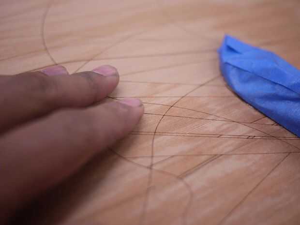 Cuando yo estaba lijado, pero no sabía lo importante que sería las líneas láser para aplicar el tinte. Yo casi arena lejos demasiado, que hubiera dejado el tinte flujo sobre las líneas de láser. Es mejor no ser demasiado agresivo aquí, sólo la arena suficiente para obtener una superficie lisa y derribar fibras sueltas.