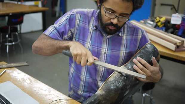 - Una vez seco el pegamento, usé un archivo y papel de lija a afeitarse los bordes al ras con el cuerpo