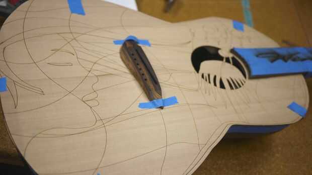 - Centrado en la tapa, asegurándose de que el refuerzo no era tocar los lados, que podrían amortiguar el sonido