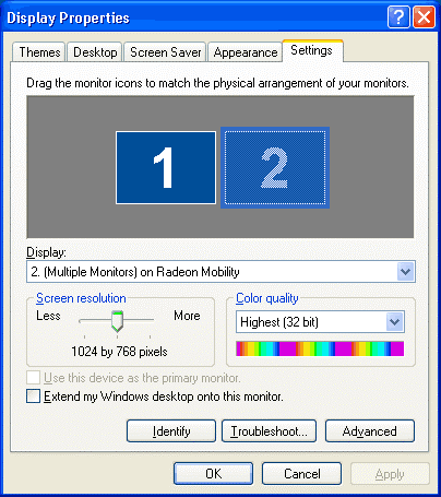 UNA VEZ QUE SE REINICIA EL EQUIPO, ESTABLECE EL PROYECTOR COMO UN ESCRITORIO EXTENDIDO CON UNA RESOLUCIÓN DE 1024 X 768 PANTALLA (ESTO ES MUY IMPORTANTE), TAMBIÉN ESTABLECE RESOLUCIÓN DE SU PANTALLA DE ORDENADOR PORTÁTIL A 1024 X 768.