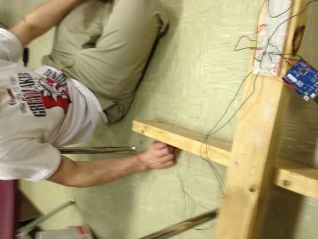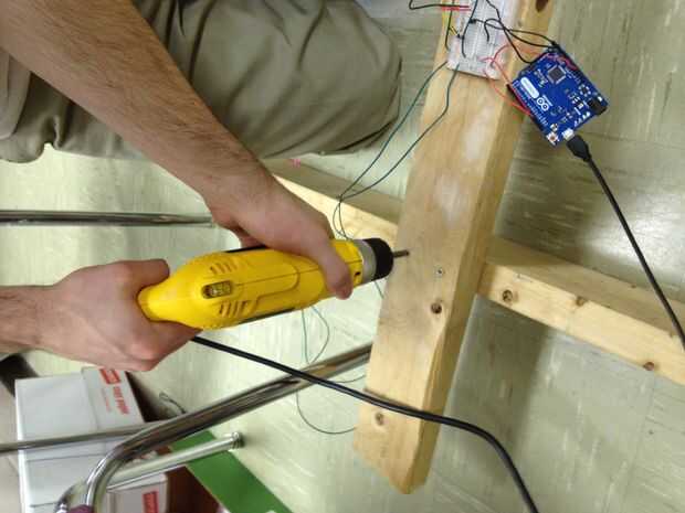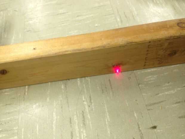 -Usa un taladro estándar con un tamaño de pedacito de taladro correspondiente para obtener el tamaño correcto para nuestro LED láser ir directamente en sin habitación ni falta de espacio. Enciende el LED y marcado donde el láser golpeó en la tabla correspondiente y luego fue y utiliza una broca más pequeña para la resistencia de la foto para que se ajuste bien dentro del agujero y no tiene demasiada luz exceso determinar el "black out" que hace tiempo.
