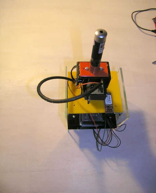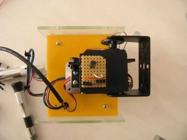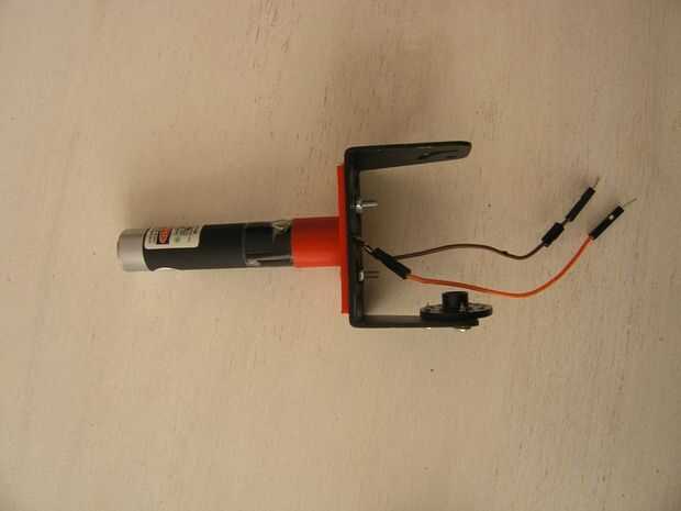 5. Conecte los cables del laser el circuito montado en el servo. Intentar mantenerlo centrado y todos los cables que van al láser son gratis y por el mismo camino y no enredaron con algo.