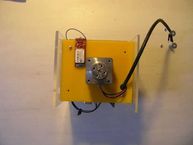 1. pegue el Motor paso a paso a la placa superior de la base. No utilizar pegamento caliente para eso pero algún tipo de silicona que no recuerdo exactamente. Pero supongo que caliente debe ser ok. Coloque el cubo de aluminio en la parte superior. Atornillar el Servo a él con la ayuda de un soporte en L Servo. Mantenga el servo en posición horizontal.
