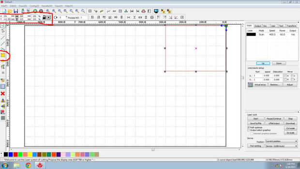 2. Observe que el espacio de 'trabajo' es 1000mm de ancho y 600mm de alto. Es el tamaño de nuestra zona de corte laser y por lo tanto todo lo que haces debe estar dentro de esta región.