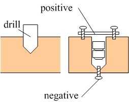 Terminal negativo está utilizando tornillo M2 en contacto con lo y el terminal positivo está conectado con la pieza de metal.