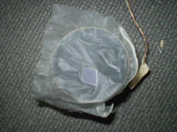 ahora su cosa redonda se pega a su altavoz. a continuación tome el guante/condón y a la forma de usted alrededor dejando una pulgada más grande alrededor del borde del objeto redondo objeto cout. a continuación tome la banda elástica y strech alrededor del guante/condón y ajuste el guante/condón de modo que usted puede golpear y sonará como un drum.next tomar su cd y corte un cuadrado pequeño y pégalo en el centro de la glove/condom.now listo para el siguiente paso