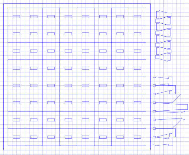 Cuando se trabaja con acrílico hay que recordar que muy a menudo es sólo unos milímetros de espesor. Esto significa que 3mm de espesor o piezas de ajedrez plana no resistirá por sí mismos. Por esta razón he incluido un pequeño agujero rectangular en cada plaza del ajedrez con un enchufe que empareja en cada pieza de ajedrez. Usted debe hacer lo mismo.