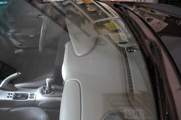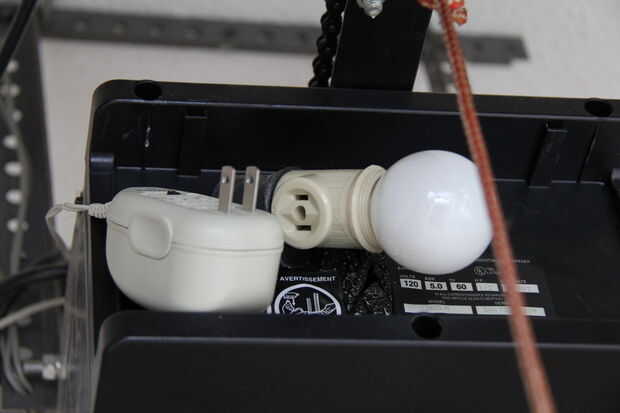 Por último, abrir su abridor de puerta de garaje exponer la bombilla y lo elimine. Tornillo en el adaptador casquillo bombilla, enroscar una bombilla (tuve que usar una versión más corta para caber), luego enchufe el láser en la salida del nuevo. Prueba para asegurarse de que el láser se enciende y apagado con el bulbo como el garaje puerta funciona. Si todo lo desprotege, simplemente montar en el techo de su garaje y punto en un lugar en el tablero de su vehículo para que sepa cuándo parar!