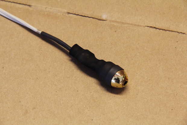 Deslice el encogimiento del calor de la tubería en su lugar y aplique algunas calor con un encendedor, fósforo, etc., hasta que se contrae hacia abajo. No calentar demasiado o vas hacer que quemar o derretir. He utilizado dos tamaños diferentes: una pieza menor (1/4") para cubrir la conexión negativa y una pieza más grande (1/2") para cubrir la placa de circuito del láser.