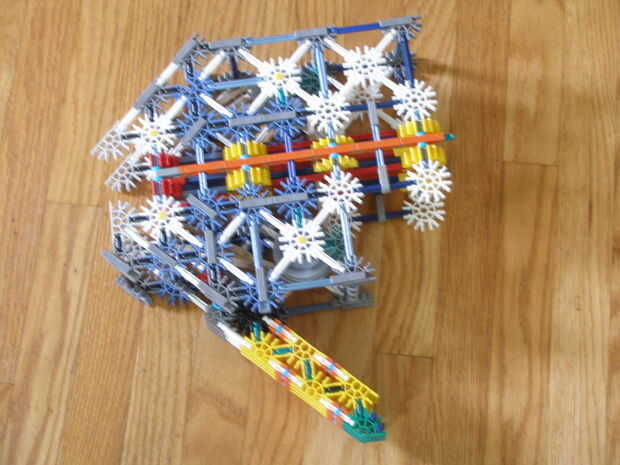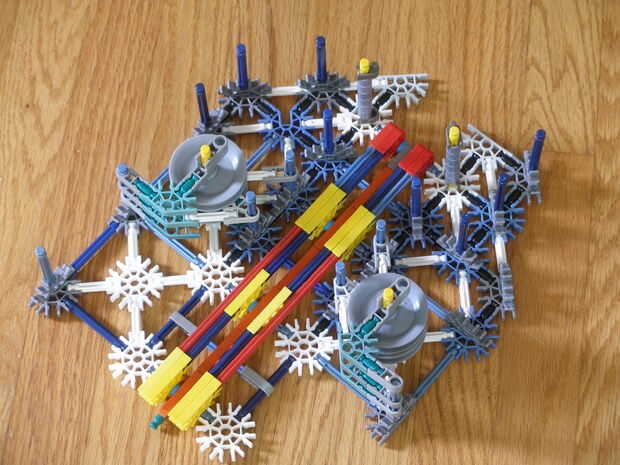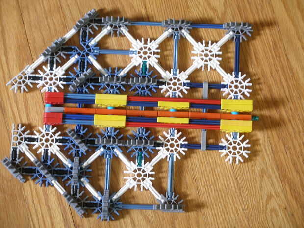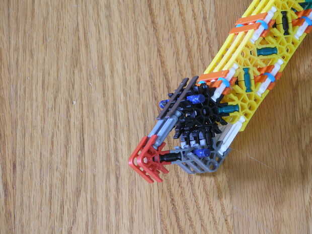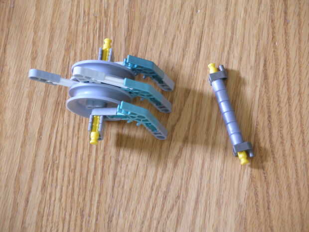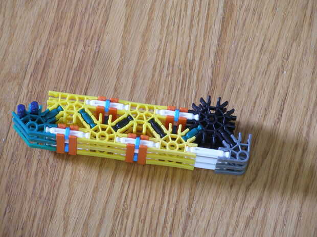 9. agregar las bandas, dos cadenas de cinco en cada rueda