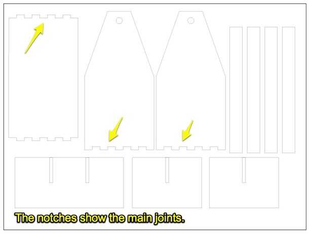Las muescas deben ser el espesor de su material. Por esa razón, he puesto les en una capa independiente para que usted puede modificar para adaptarse a su material. (Ya sé, cuidan sobre capas me muestra que soy mucho más fluido de photoshop a illustrator...)