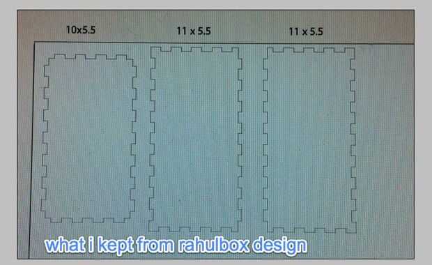 Borré las partes de la Rahulbotics diseño de la caja no era necesario y mantener sólo el 11x5.5 y 10.5.5 lados, uno de cada uno.