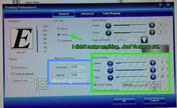 Estas son las preferencias de impresión que utiliza. Debe calibrar tuya a la máquina lasercutting que usas.