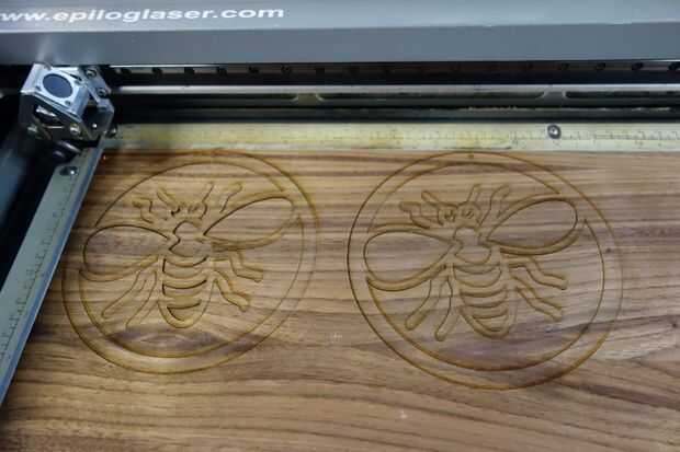 Después de la primera prueba exitosa salida, he probado el mismo archivo en diferentes materiales, restos de madera y acrílico para ver cómo resultan.