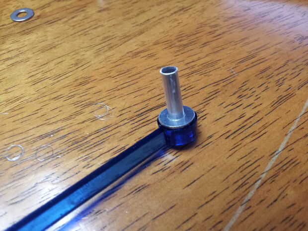 Para conectar el brazo de "palillo" en el lugar de la rueda delantera en del tubo 7/8" a través de todas las piezas con una arandela entre el brazo de palanca y las piezas de la rueda.