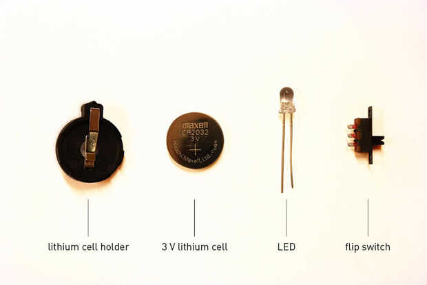 En nuestro ejemplo utilizamos una pila de moneda de litio (CR2032) con 3 voltios. Debido a la tensión de los LED (que es de aproximadamente 3,5 V) no necesitamos un resistor de pre para esta combinación porque el LED no "sobrecargado" con una corriente peligrosa. Sin embargo, si usted quiere tomar otro tipo de baterías o un LED con una tensión más baja, debe tener lo siguiente en mente.