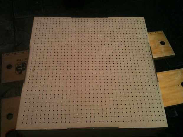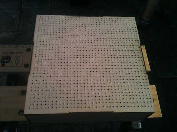 Taladre los orificios en la parte superior de la caja. No te preocupes va en la caja de aserrín. Esto puede aspirar más adelante. Una vez han perforado todos los agujeros que pueden tomar algún tiempo. Le dan una luz de arena para quitar todos los bordes levantados.