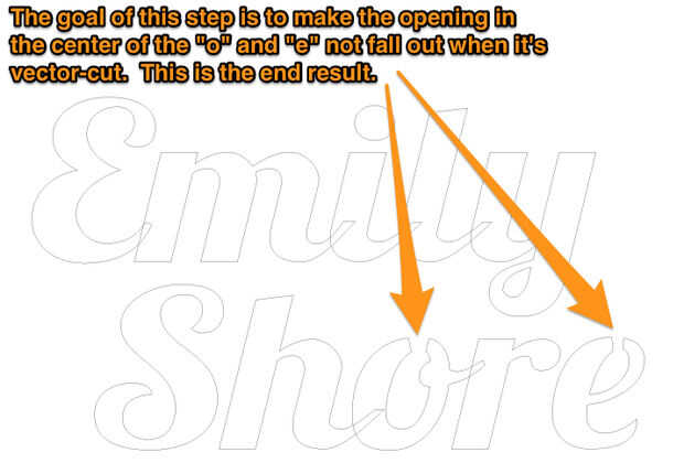 Nos va preparando el "o", minúsculas "e" para ser vector de corte. Las otras letras no lo necesita porque no hay ningún agujero en el medio de esas letras.