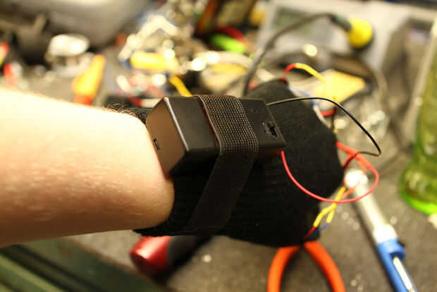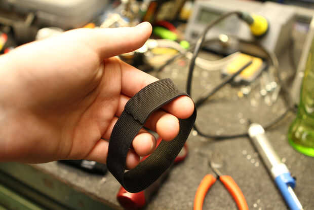 Ahora sólo tenemos que fijar el batterypack los guantes para que no gire alrededor del lugar mientras vas mono-s % "#.