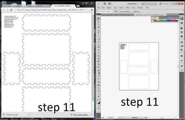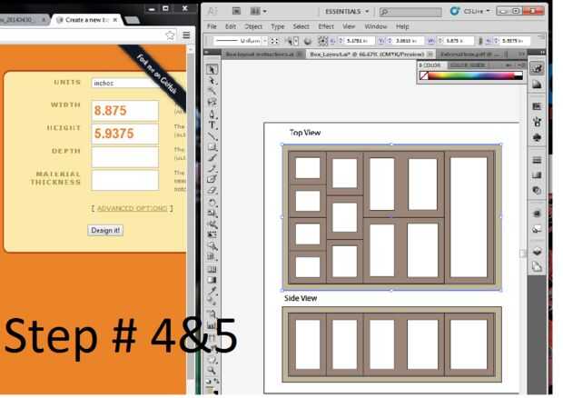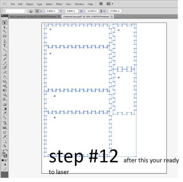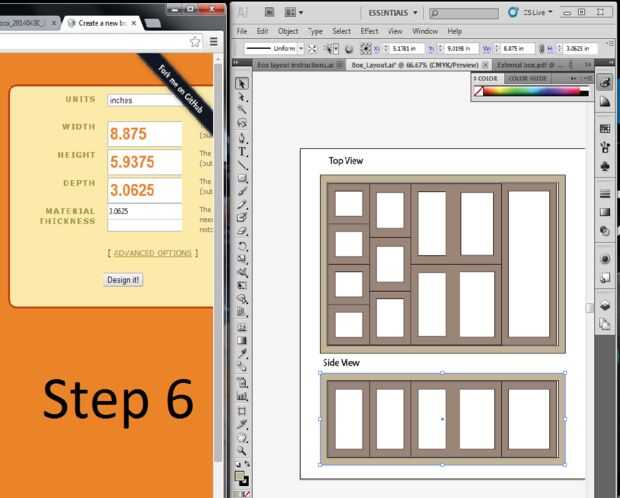 Los pasos siguientes describen en detalle cómo tomar dimensiones de su uso diseño para diseñar un cuadro en el fabricante de la caja página y transferir los datos a su programa de gráficos vectoriales. Se repita este proceso para la caja principal y caja interna y luego proceder a la preparación y lasering una vez que tengas archivos de diseño para todas las cajas