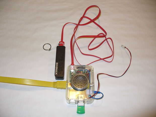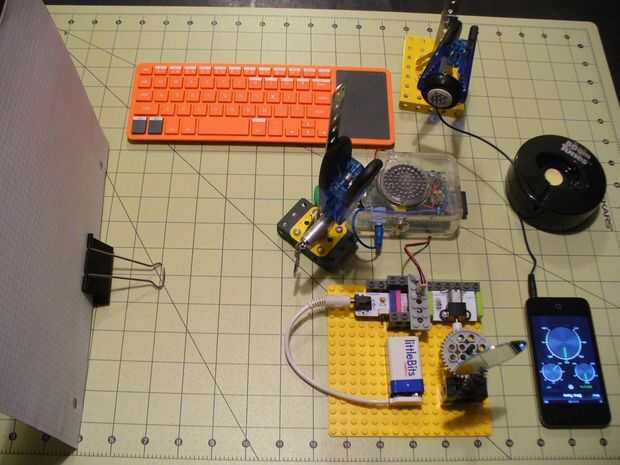 Para grabar el siguiente video tuve que realizar dos modificaciones al diseño original. Tuve que colocar una fuente de alimentación de verrugas de pared para el módulo de littleBits para no usar la batería de 9 voltios y funciona el equipo de Kano con una batería de teléfono móvil en lugar de su fuente de alimentación normal. La segunda imagen es una captura de Kano alimentado por la batería del teléfono celular.