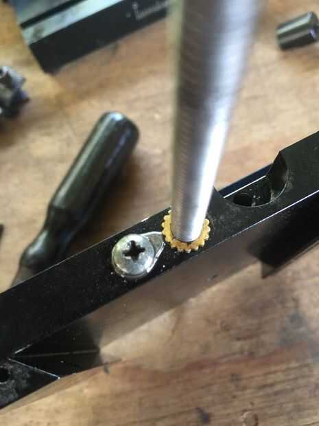 Ahora apriete el tornillo phillips y clip de sujeción en uno de los dientes de estrellas en la tuerca de las pestaña para evitar que se afloje.