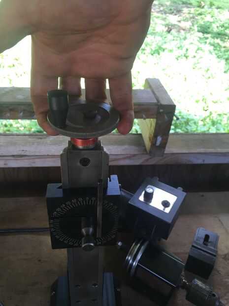 Cuando se coloca el portaobjetos en la placa de la tuerca, hacer el perno de fijación principal cómodamente pero no todo el camino, dejar espacio para el ajuste los tornillos de fijación ajustar.