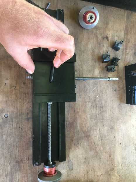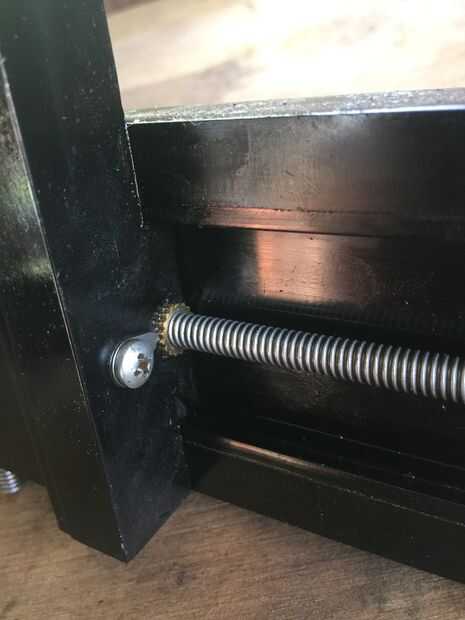 Aquí puedes ver el latigazo contra tornillo retenedor y retirar el volante del eje x. Hay la tuerca del cañón principal, una de latón redondo tuerca en el centro de la diapositiva. Esta es la principal y se lleva a cabo en un tornillo de fijación. Correctamente tensada y ajustado, esta tuerca crea tensión en el interior de un hilo de rosca de la barra roscada y la tuerca contra el latigazo en el exterior le da un tirón en esta tuerca interior principal. Esto empuja al otro lado de los hilos como los tirones de la tuerca interior, causando todo el juego deben retirarse de la Asamblea de husillo. Si esto no es claro, deberían ayudar los cuadros. Leído en:)