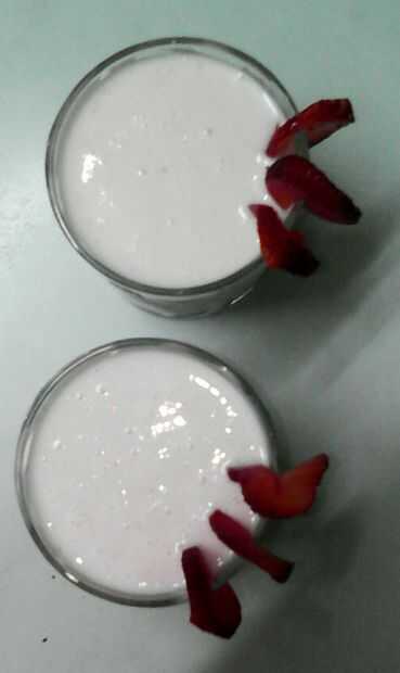 Lassi es una bebida de verano refrescante y refrigerante. Es bebida de yogur base, que se origina de la India. Aquí, he hecho fruta base de lassi. Puede reemplazar fresa con su elección de cualquier pulpos frutas como Mango, Kiwi, cantalupo. Sabor du