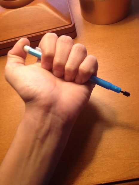 2. Empuje la parte trasera del lápiz como si empujar hacia fuera plomo (quitar cualquier plomo dentro, no es necesario). Mantenga presionada la parte posterior del lápiz.