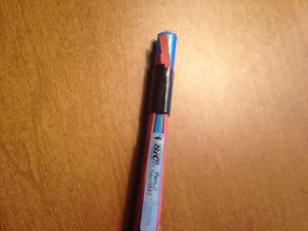 2. Ponga la mitad de la banda sobre la parte del borrador del lápiz.