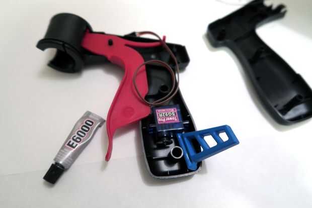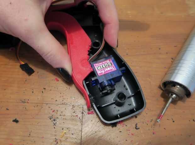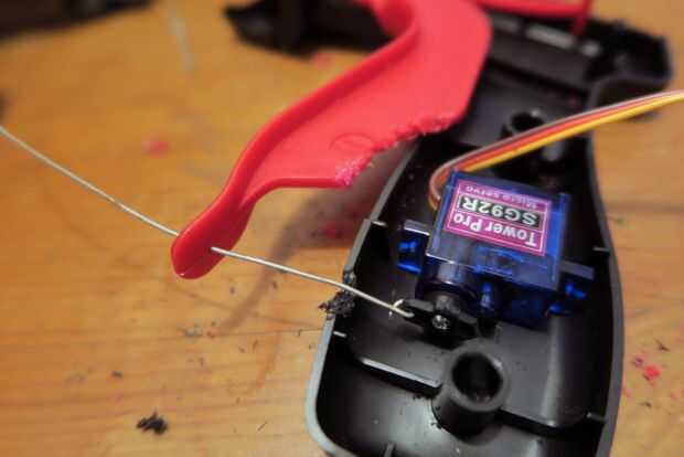 Enrute el cable del servo por la parte superior de la lata arma y dejar holgura en el cable disparador para calibrar más adelante.