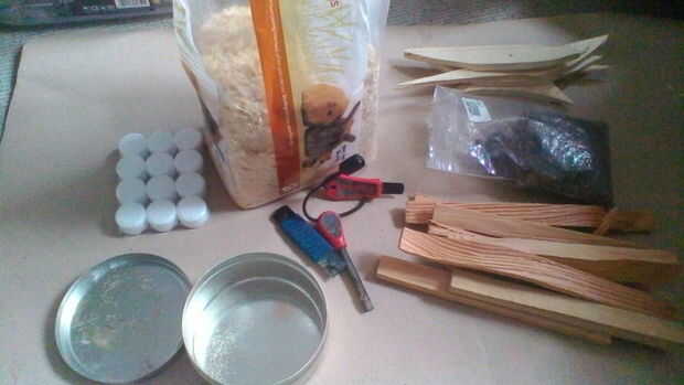 una huelga de fuego o un encendedor si eres incapaz de usar una huelga. y un disco de algodón o dos para coger la chispa de la huelga. (lo siento olvide poner las pastillas en la imagen.)