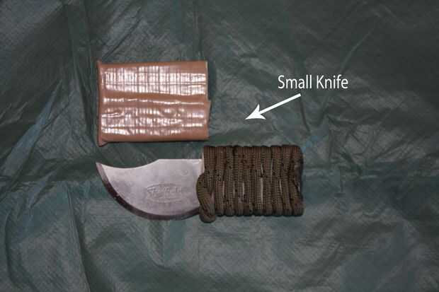 He añadido uno de los cuchillos de supervivencia pequeños que hice en un Instructable anterior como hasta la navaja que tengo siempre en mí. Utilicé casi exclusivamente durante los ensayos de campo pongo este kit poco a través de y soportó muy bien. Requieren afilado cuando lo he hecho. Lo notó y corregido en un plazo breve, fue que es tamaño pequeño hacer un poco incómodo de usar después de un tiempo, por lo que encontró un trozo de madera y un mango más grande para él para su uso mientras estaba en el bosque. Para el almacenamiento de volví a la disposición original.